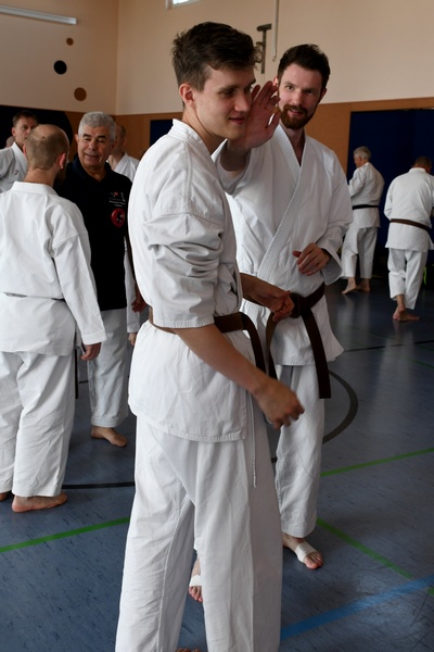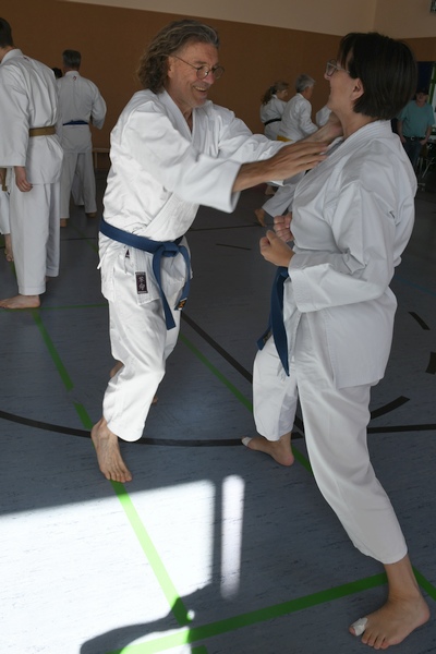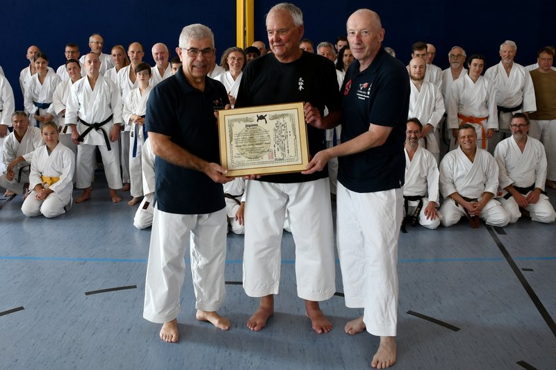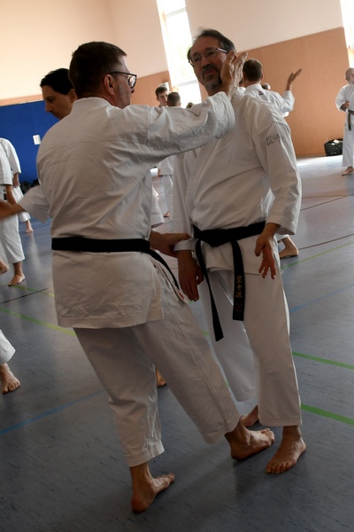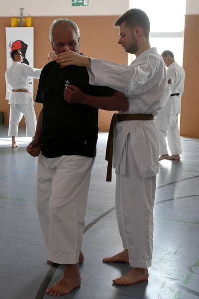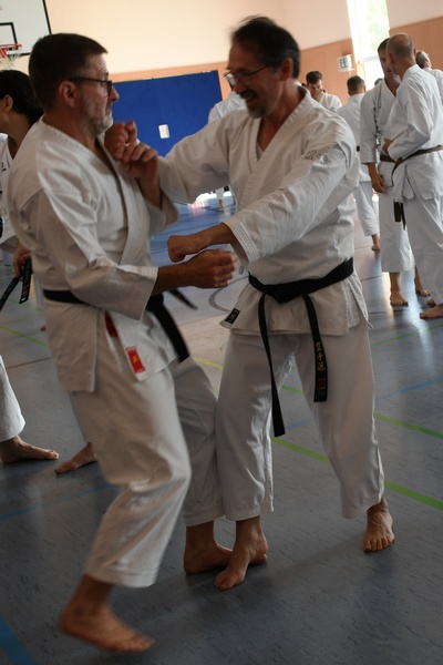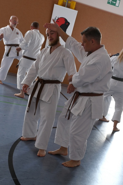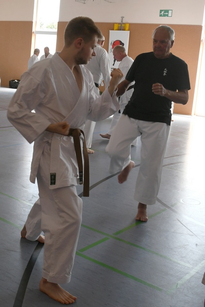 Themen: "Das Wissen der alten Meister" Kata ShinGiTai (GeistKörperTechnik) Kata Sochin (Kraft und Ruhe) Realistisches Bunkai Danvorbereitung Danprüfung |